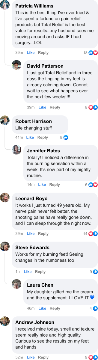 “I never write comments on products I use. I am making an exception for Total Relief. I have tried many products for nerve pain relief. Some work with a little relief. This is the first product that totally relieves the pain. “